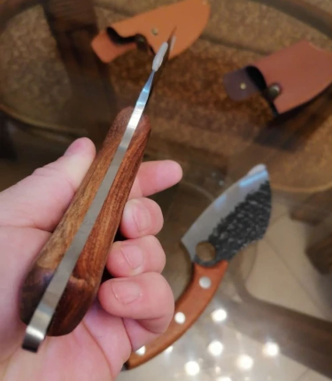 De messen en lederen behuizing werden snel geleverd. Ik kocht ze als cadeaus voor mijn familie. Ik ben dol op de kwaliteit van deze messen en ik was eerst sceptisch over het kopen van de lederen tassen. Maar nu ben ik zo blij dat ik ze heb gekocht. Ze zijn van zeer goede kwaliteit en vormen een leuke toevoeging om de messen als cadeau te geven. Al bij al ben ik zeer tevreden met mijn aankopen.